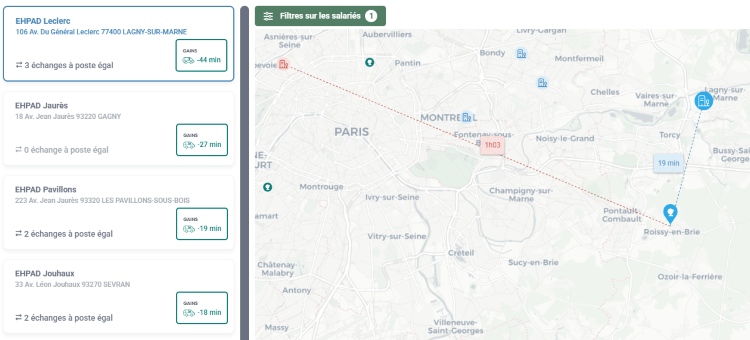 ✅ Filtres par gain de trajet, souhait de mobilité...