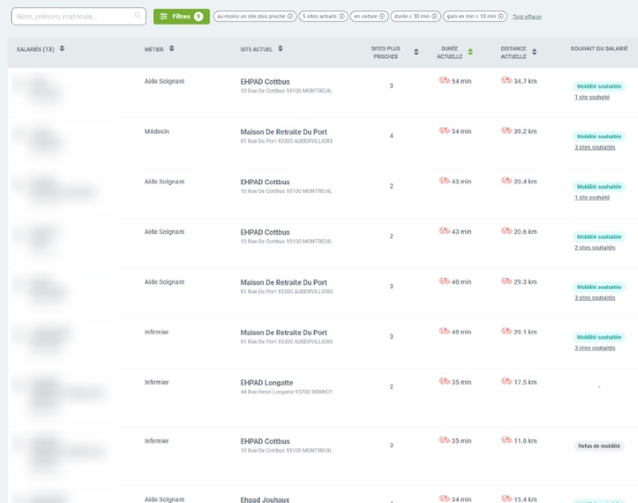 ✅Identification des salariés qui ont des sites plus près de chez eux